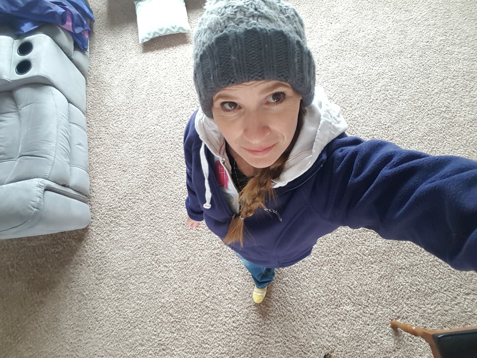 I'm standing here in jeans with a pair of leggings underneath, a pair of fuzzy socks, a tank top, a long sleeve shirt, a zip-up hoodie, a coat, and a hat. Inside. Because I was cold. Did I mention that my house was set to 74?